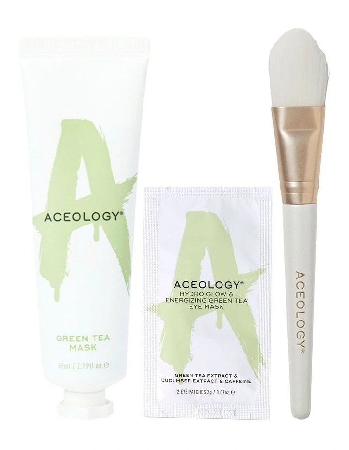 This set also includes our Hydro Glow & Energising Green Tea Eye Mask to revitalise your under eyes with Caffeine, Cucumber, and Green Tea Extract. Totally tea-rrific, these products help refresh and uplift your skin.