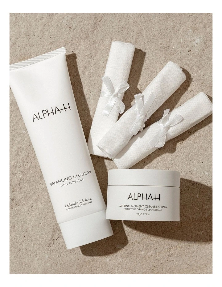 Product Ingredients: BALANCING CLEANSER: Aloe Vera: Soothing and calming plant extract with natural anti-inflammatory properties, helps to improve skin hydration. Vitamin E: Rich in antioxidants, helping to protect the skin from free radical damage and supporting the skin’s barrier function.MELTING MOMENT CLEANSING BALM: Australian Wild Orange Extract: rich in Amino Acids to increase skin barrier function and antioxidants to prevent free radical damage Grapeseed Oil: This Vitamin E rich oil is known for its anti-inflammatory properties to help calm the skin. Australian Sandalwood Seed Oil: Rich in Ximenyic Acid, one of the rarest fatty acids in the plant world, this luxe natural oil is anti-inflammatory, increases micro-circulation in the skin, reduces sebum secretion. Bisabolol: Extracted from Chamomile and rich in Panthenol (Pro-Vitamin B5), Bisabol deeply hydrates and instantly calms the skin. Please see packaging for full ingredients.