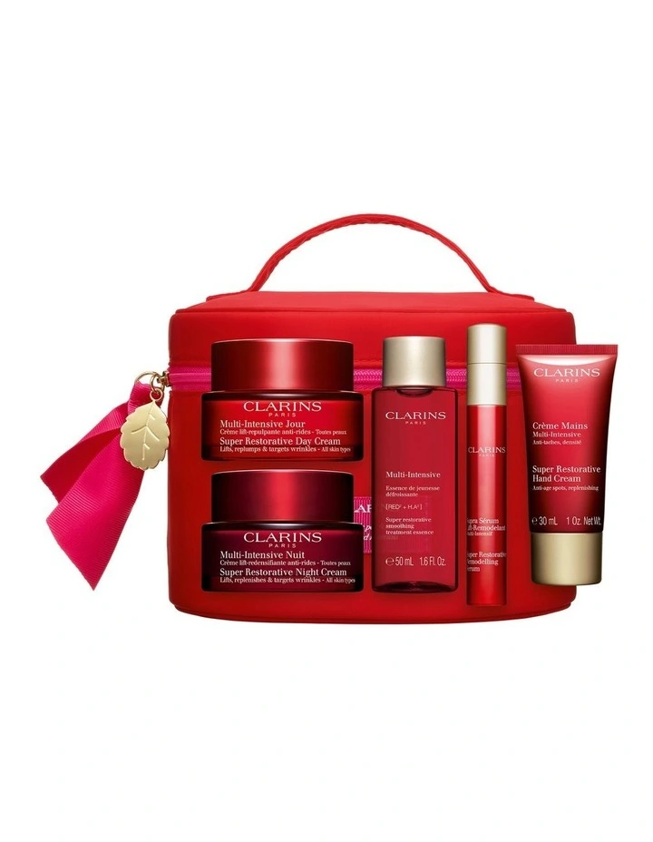 This anti-ageing skincare set is the perfect combination to meet the specific needs of skin weakened by hormonal changes due to ageing, thanks to its Harungana extract which helps restore density to the skin. The day and night creams combined with the Super Restorative Treatment Essence replenish and smooth the face, while reducing wrinkles. Super Restorative Remodelling Serum redefines contours and the face shape. The Super Restorative Hand Cream softens and comforts dry, cracked and sensitive hands.