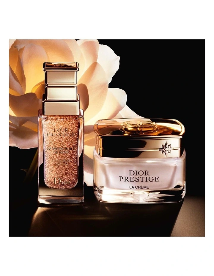 - Continue the skincare ritual with Dior Prestige La Micro-Huile de Rose Advanced Serum.