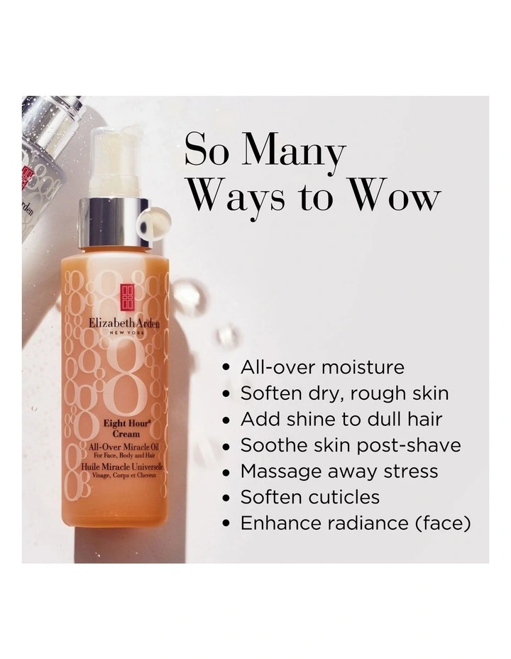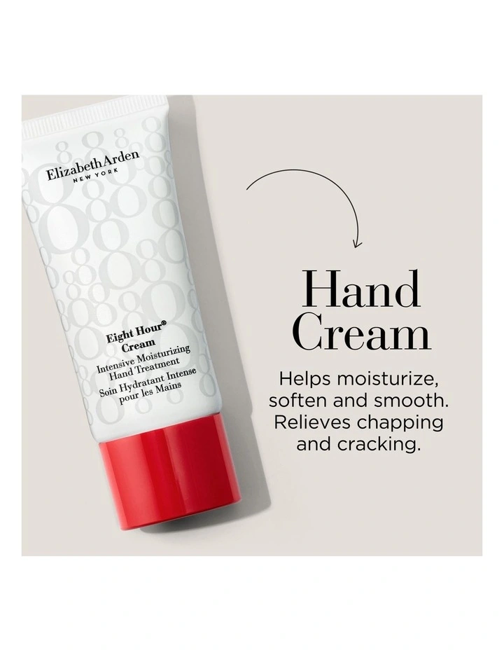 Eight Hour Miracle Oil 100ml, Eight Hour Lip Protectant Stick SPF15 3.7g, Eight Hour Hand Treatment 30ml. Valued at $82