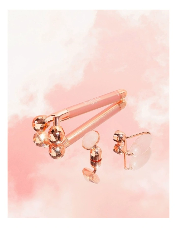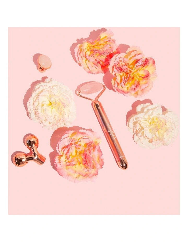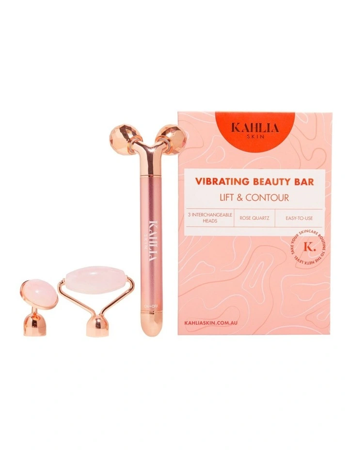 Take face rolling to the next level! The Kahlia Skin rose quartz vibrating beauty bar utilises over 6,000 sonic vibrations per minute that help to tone, lift and sculpt the face. Roll away puffiness with our three interchangeable roller heads. Our unique beauty bar will promote circulation and tenderly stimulate the lymphatic system to combat puffiness and water retention in the face and neck. Suitable for all skin types.