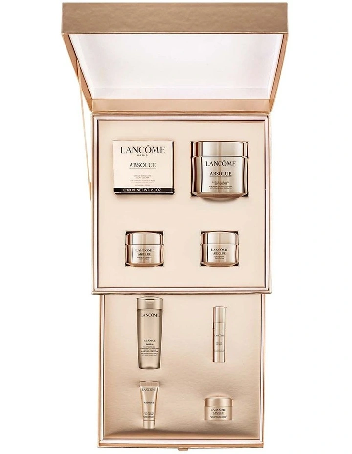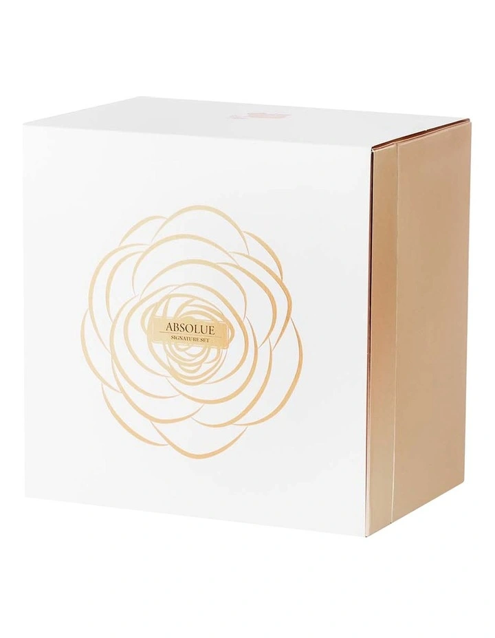 Lancomes Absolue Signature Set is a luxurious limited edition skincare set. It features the regenerating power of the Absolue perpetual rose and a promising scientific field that targets ageing on a molecular level. The inner trays of this luxurious box can be removed and discarded responsibly, leaving the beautiful Absolue rose-themed box as an infinitely re-usable keepsake.