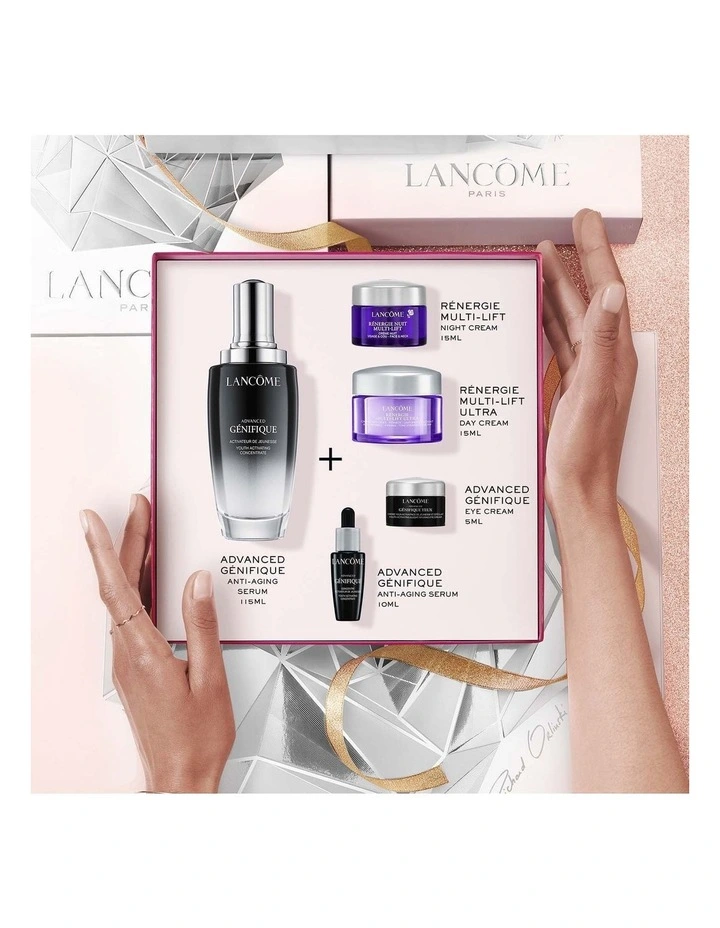 -ADVANCED GENIFIQUE ANTI-AGING SERUM 10 & 115 ml: Experience advanced anti-aging efficacy with this holy grail of skincare, and visibly rejuvenate aging skin* with improved radiance, skin texture, firmness, skin clarity and more. *Cosmeto-clinical evaluation, 34 subjects, 8 weeks