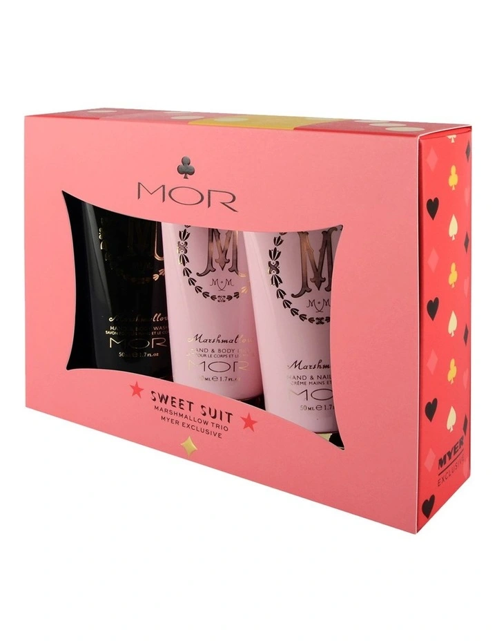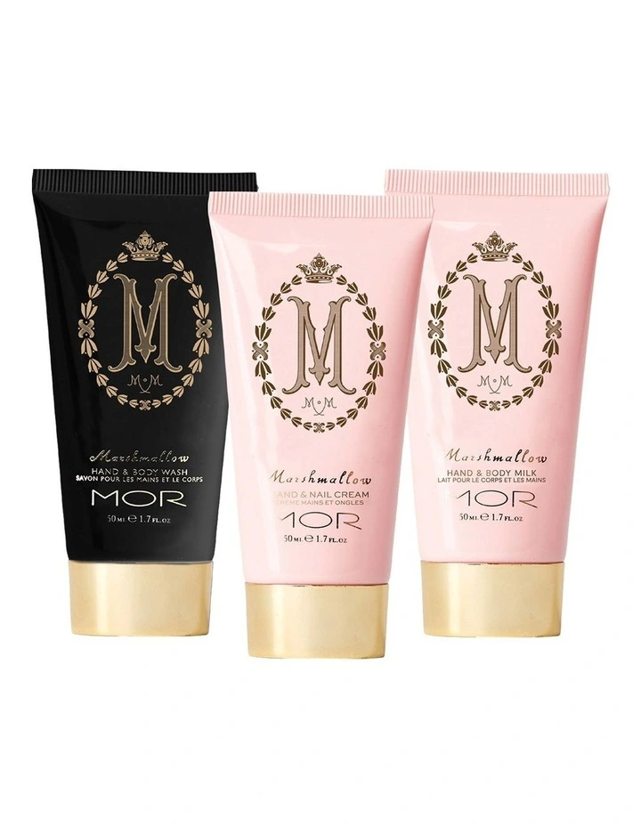 Discover a playful and sweet surprise with this set of three Marshmallow hand and body products, conveniently sized at 50 mL each.