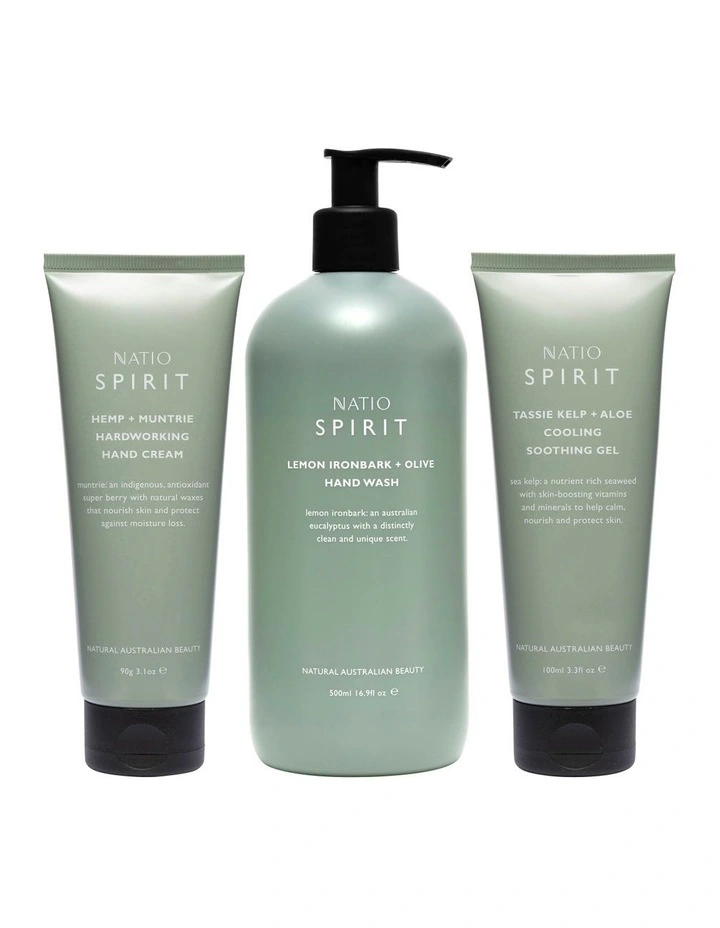 Formulated with nutrient-rich native Australian botanicals sourced across land and sea, this essential trio cleanses, nourishes and soothes deserving hands and skin naturally.Β
