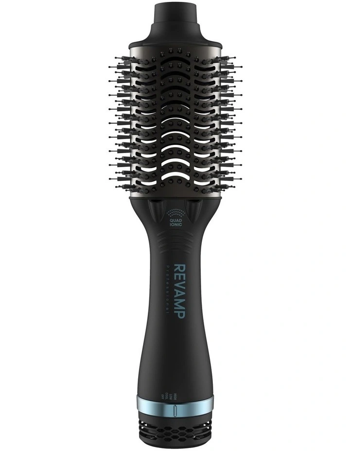 Powerful drying and styling combined into one simple hair tool. The Revamp Progloss Perfect Blow Dry Volume and Shine Air Styler dries, detangles, smooths and styles your hair in just one pass. The oval ceramic barrel of the brush works to smooth and style hair, whilst the rounded edges add volume at the root, to help you create a salon-quality blow-dry at home. To ensure frizz-free styling, this multifunctional styler features 4 ionic jet emitters and a ceramic barrel. Customise your styling experience with 3 Heat/Speed Settings, including a Cool option to set your hairstyles in place.Β The lightweight design and 3m salon swivel cable allow for quick and easy styling, with additional flexibility. Infused with Progloss super smooth oils for enhanced shine.Β