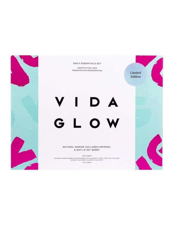 Reset their beauty routine from within with Vida Glows Daily Essentials Set. Combining two science-backed ingestible solutions with 10 bonus sachets included for strong, youthful-looking skin with celebratory bounce.