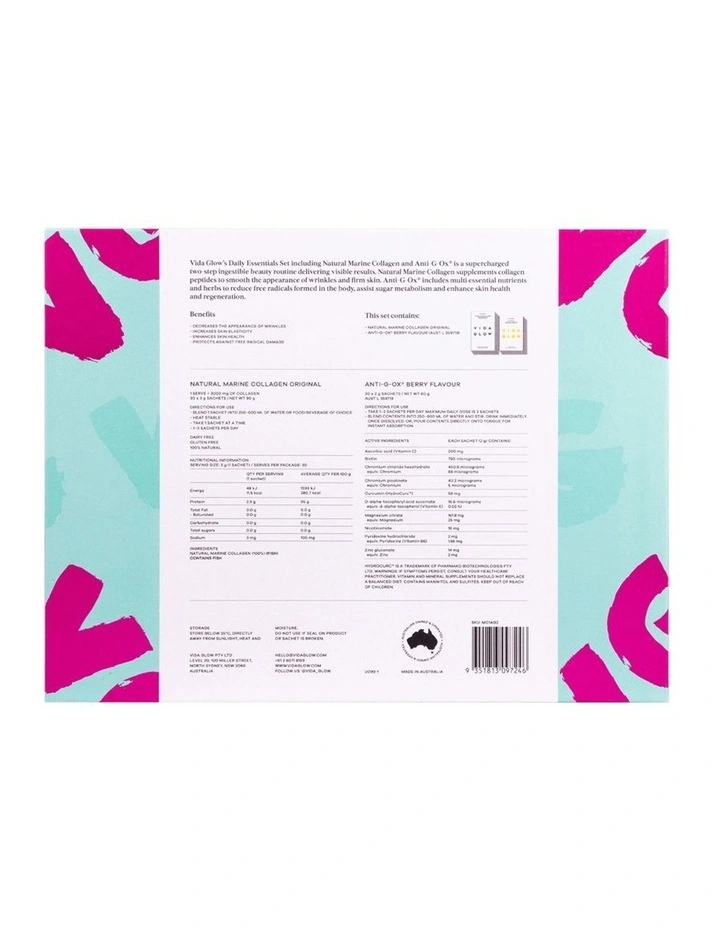 A curated routine of our best-selling Natural Marine Collagen and effervescent Anti-G-Ox, the Daily Essentials Set delivers two supercharged steps to defend and maximise skins glow this holiday season.