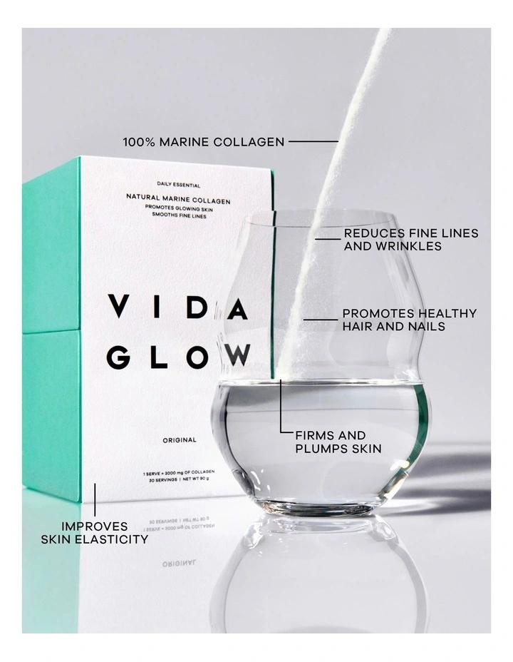Original Natural Marine Collagen is a collagen peptide supplement made from sustainably-sourced fish skin. Vida Glows hydrolysed marine collagen has been activated to boost absorption (so your body can actually use it) and stimulate fresh collagen production.